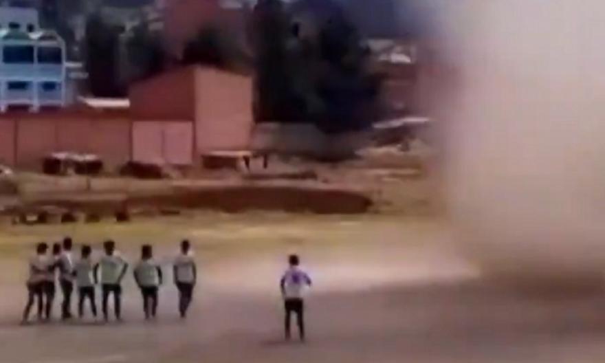 Λίγο πριν τη σέντρα ενός ποδοσφαιρικού αγώνα στη Βολιβία, την είσοδο στον αγωνιστικό χώρο έκανε ένας... ανεμοστρόβιλος σκορπώντας τον πανικό σε παίκτες και διαιτητές.