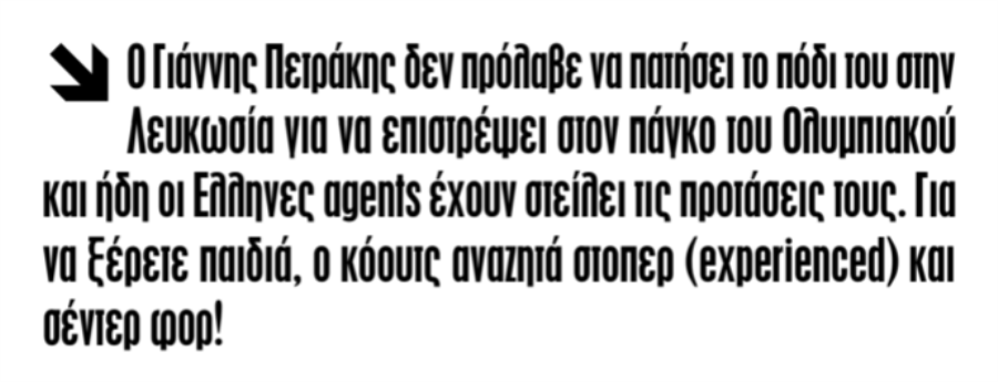 Όπως αναφέρεται, ο Ελλαδίτης κόουτς των "μαυροπράσινων" αναζητά στόπερ και σέντερ φορ.