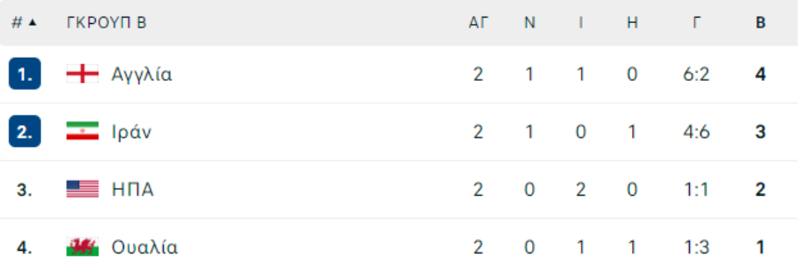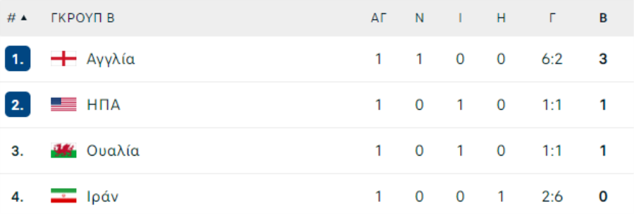 Στην επόμενη φάση του Μουντιάλ πέρασε η Αγγλία και οι ΗΠΑ.