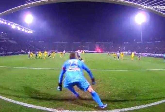 Ο Κουέστα κέρδισε το ελάχιστο πλεονέκτημα και με τα ακροδάχτυλα έδιωξε τη μπάλα πριν καταλήξει στο δοκάρι.