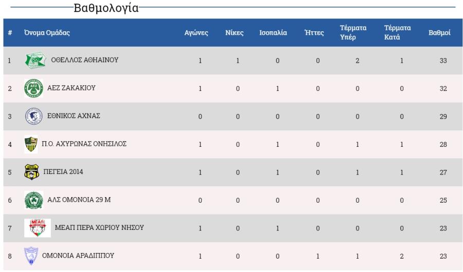 Ο Οθέλλος βρίσκεται στην κορυφή με 33 βαθμούς και ακολουθεί η ΑΕΖ με 32 βαθμούς.