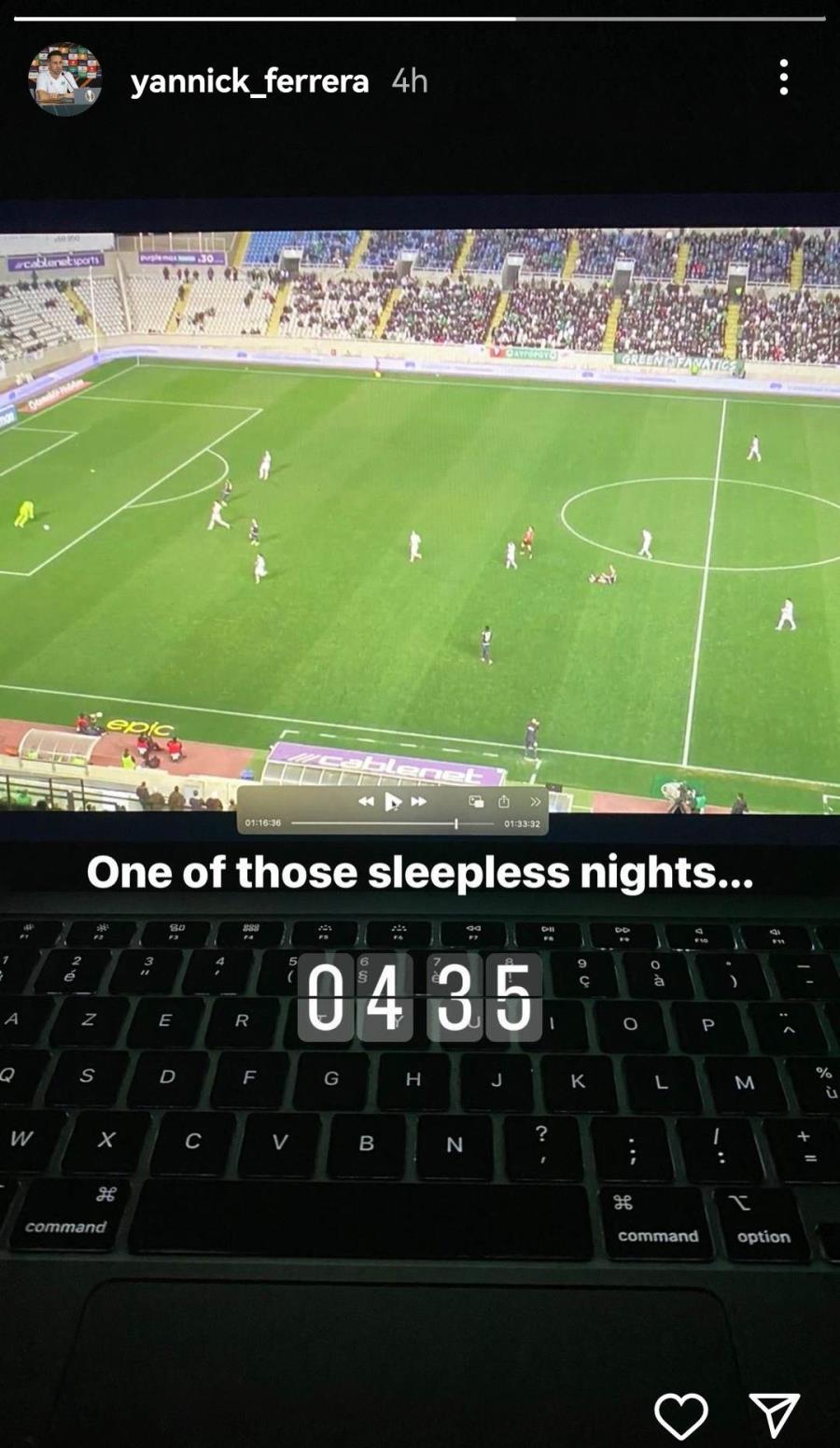 Όπως... ενημερώνει ο ίδιος με story η ώρα 4:35 τα ξημερώματα έβλεπα στον ηλεκτρονικό του υπολογιστή ξανά το ισόπαλο παιχνίδι Ομόνοια-Πάφος FC.