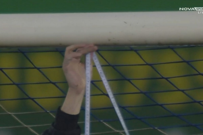 Ο διαιτητής επέστρεψε στον αγωνιστικό χώρο και μέτρησε το ύψος και στις δύο εστίες, μαζί με τους αρχηγούς των δύο ομάδων.