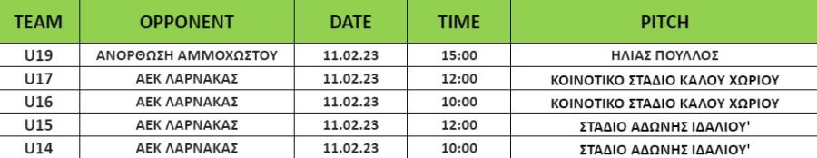 Για την 11η αγωνιστική του πρωταθλήματος Κοριτσιών Κ15 η ΟΜΟΝΟΙΑ θα αντιμετωπίσει το Σάββατο τον Ολυμπιακό-Ασπράκη (ακόμη δεν έχει οριστεί ώρα και γήπεδο)».