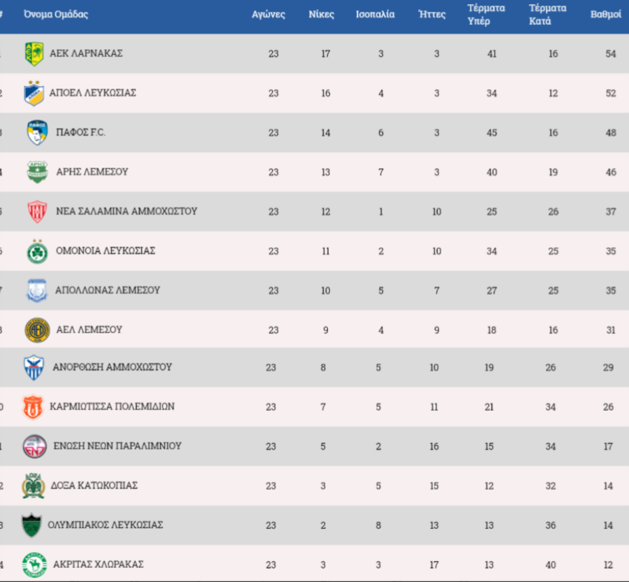 Όπως βλέπετε, ο Απόλλωνας ήταν στο... -19 από την πρωτοπόρο ΑΕΚ, στο... -17 από τον 2ο ΑΠΟΕΛ και στο -13 από την 3η θέση που εξασφαλίζει 100% ευρωπαϊκό εισιτήριο. Από την 4η θέση που υπό προϋποθέσεις μπορεί να δώσει ευρωπαϊκό εισιτήριο, ήταν στο -11!