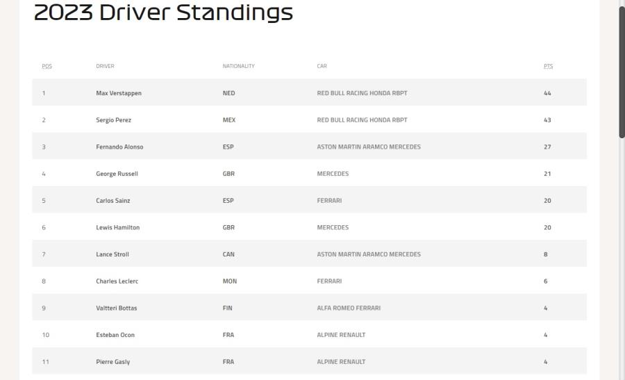 Βαθμολογία Formula 1 - ΧΑΜΟΣ: Έναν μόλις πόντο μπροστά ο Φερστάπεν από τον Πέρεζ!