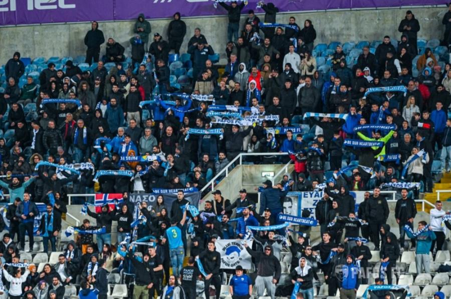 Στα χρώματα της Πάφος FC φωτίστηκαν οι εξέδρες του σταδίου «Αλφαμέγα», για το αποψινό (19:45) ματς με αντίπαλο τη Βιγιαρεάλ, για την 4η αγωνιστική της League Phase του Champions League.