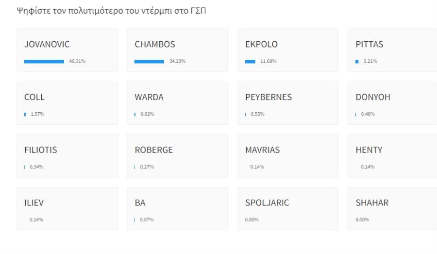 Στη δεύτερη θέση ακολούθησε ο Χάμπος Κυριάκου με 34,3% ο οποίος άνοιξε το σκορ με υπέροχο σουτ εκτός περιοχής.