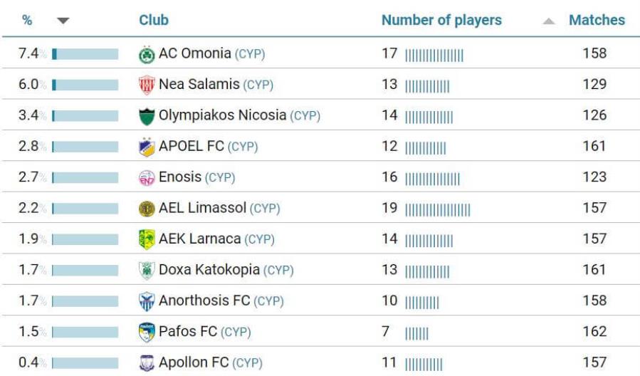 Σύμφωνα με τη μεγάλη έρευνα που πραγματοποίησε το Διεθνές Παρατηρητήριο Ποδοσφαίρου (CIES), η ΟΜΟΝΟΙΑ αναδείχθηκε ως η ομάδα στην Κύπρο που αναλογικά χρησιμοποίησε τους περισσότερους ποδοσφαιριστές κάτω των 20 χρόνων, τα τελευταία πέντε χρόνια (2018-2023).