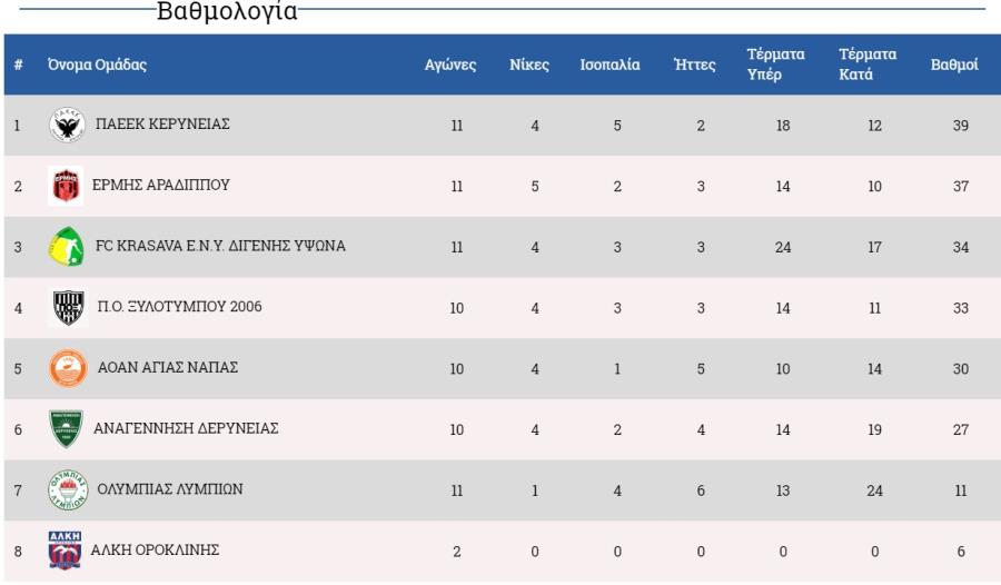 Η βαθμολογία στον Α΄ όμιλο έχει ως εξής: