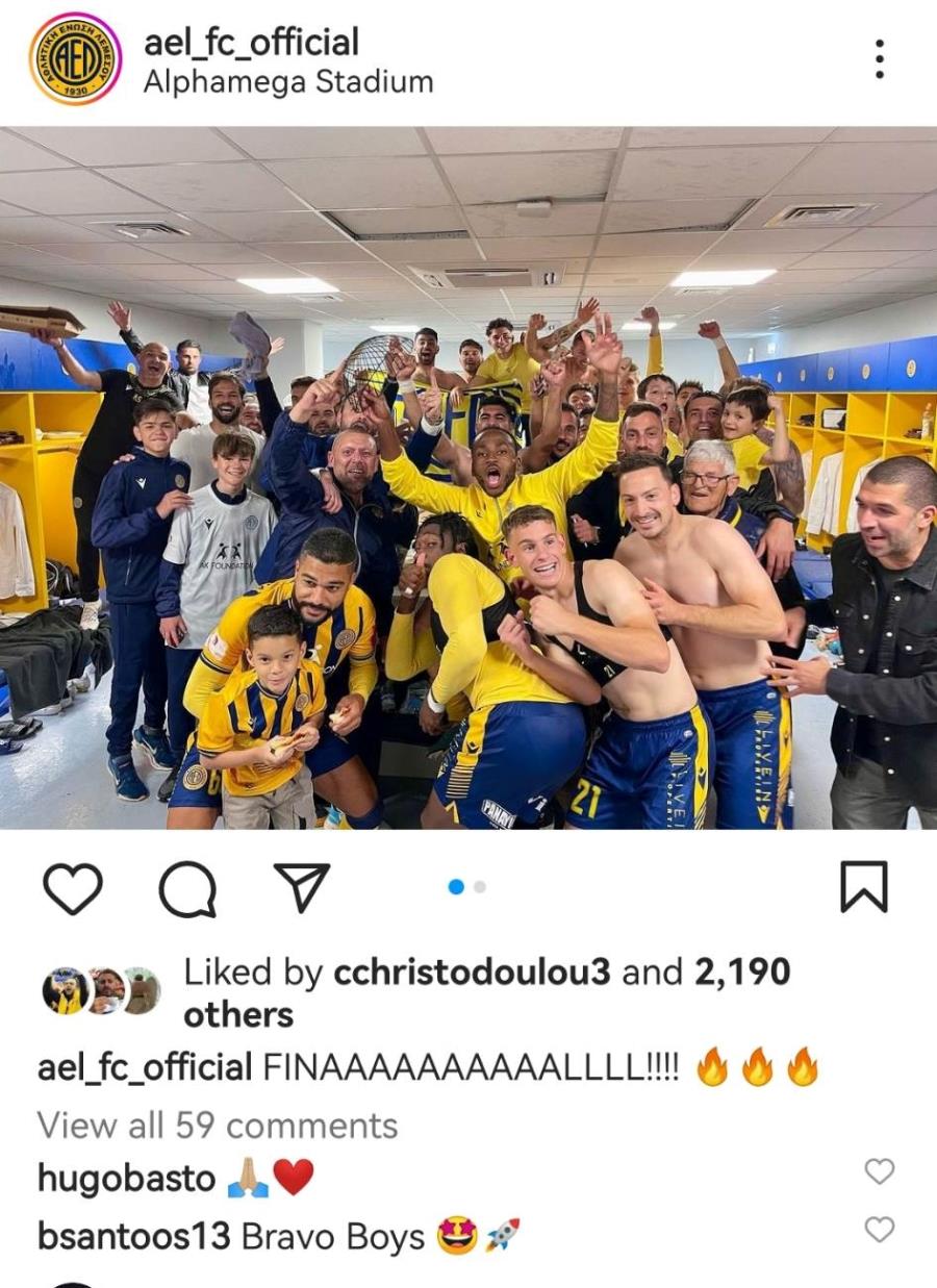Ο Βραζιλιάνος μπακ που αποχώρησε τον περασμένο Ιανουάριο από την ΑΕΛ για την Γκοιάς έστειλε τα συγχαρητήρια του στην πανηγυρική ανάρτηση της ΑΕΛ.