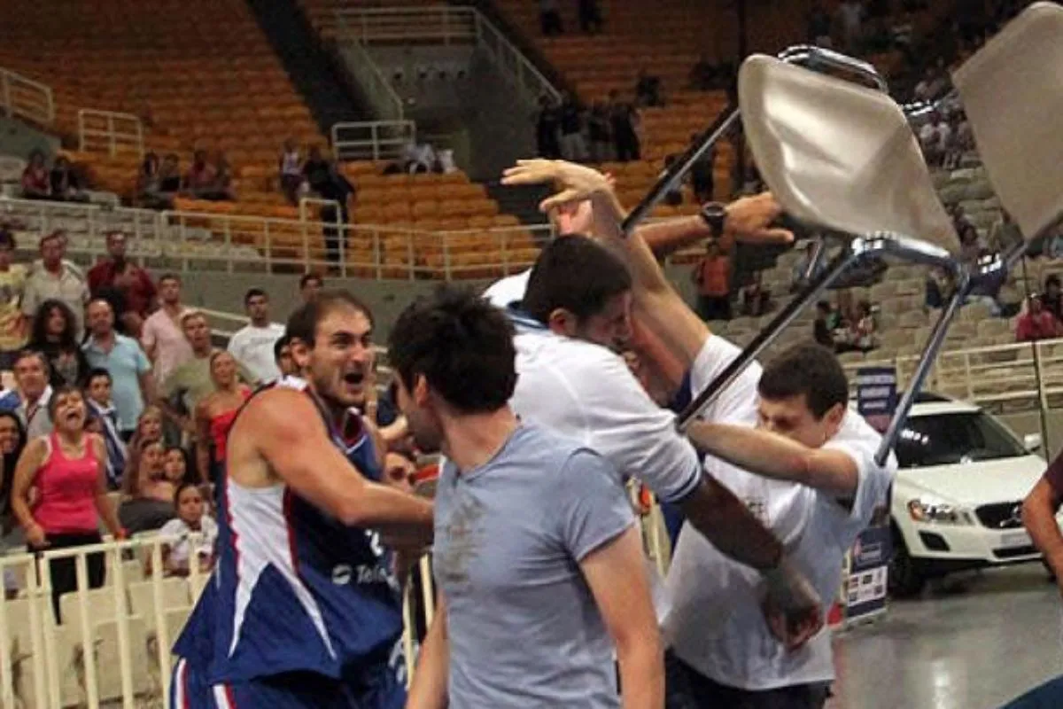 Παίκτες να πιάνονται στα χέρια, αντικείμενα να εξφενδονίζονται από τις εξέδρες, καρέκλες να γίνονται «όπλα». Το «ξύλο» στον αγώνα Ρεάλ Μαδρίτης – Παρτίζαν αναμφίβολα κερδίζει μία θέση στις πιο «τρελές» περιπτώσεις που έχει γίνει χαμός σε αγώνα μπάσκετ. Υπάρχουν κάποιες άλλες όμως που κάνουν τα όσα συνέβησαν στη Wizink Arena να μοιάζουν με… μαξιλαροπόλεμο.