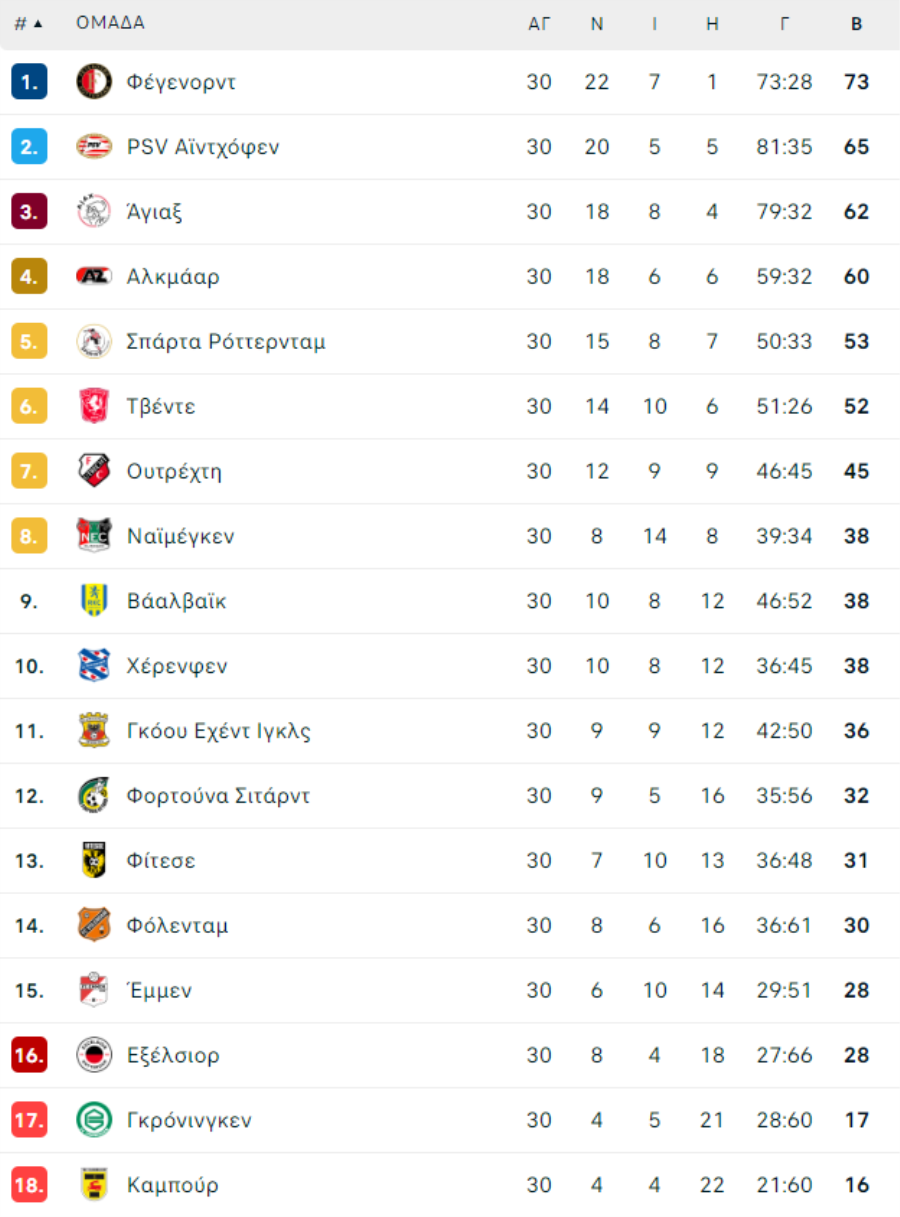 ΟΛΛΑΝΔΙΑ - EREDIVISIE