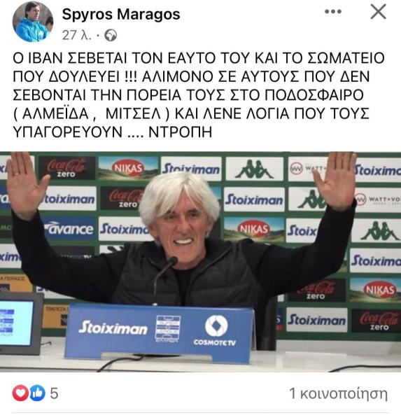 Ο άλλοτε τεράστιος ποδοσφαιριστής, Σπύρος Μαραγκός, μίλησε με τα καλύτερα λόγια για τον Ιβάν Γιοβάνοβιτς ενώ σημείωσε ότι Αλμέιδα και Μίτσελ δεν σέβονται την πορεία τους στο ποδόσφαιρο και λένε λόγια που τους υπαγορεύουν.