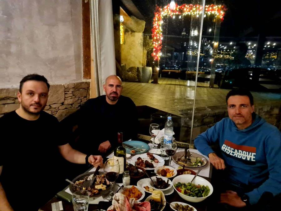 Στη συνέχεια οι τρεις τους κατευθύνθηκαν στη γνωστή ταβέρνα Άγιος Επίκτητος στο Αρμενοχώρι και απόλαυσαν τους μεζέδες. Εκεί φωτογραφήθηκαν με τον μικρό Ραφαήλ και τον οπαδό της ΑΕΛ Φυλακτή.