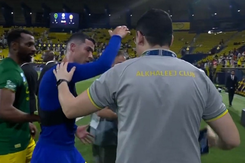 ThemasportsΟ Κριστιάνο Ρονάλντο δεν είχε όρεξη μετά την ισοπαλία της Αλ Νασρ με την Αλ Καλίτζ και έσπευσε να πάει κατευθείαν στα αποδυτήρια μετά το τέλος του αγώνα, σπρώχνοντας μάλιστα ένα μέλος της αντίπαλης ομάδας που τον πλησίασε για να βγάλει selfie μαζί του.