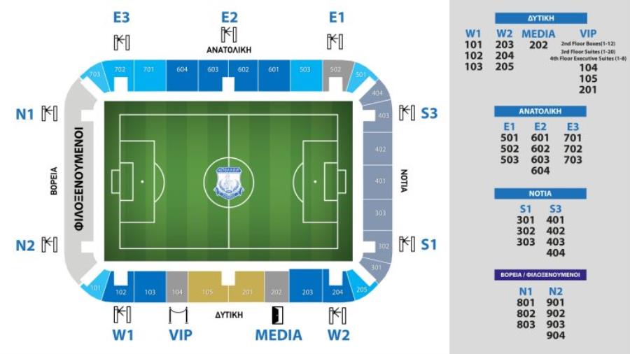 Τονίζεται ότι στους τομείς της δυτικής και ανατολικής εξέδρας ισχύει η ταξιθεσία και ως εκ τούτου καλείται το φίλαθλο κοινό όπως πάρει τη θέση την οποία αναγράφεται στο εισιτήριό του.