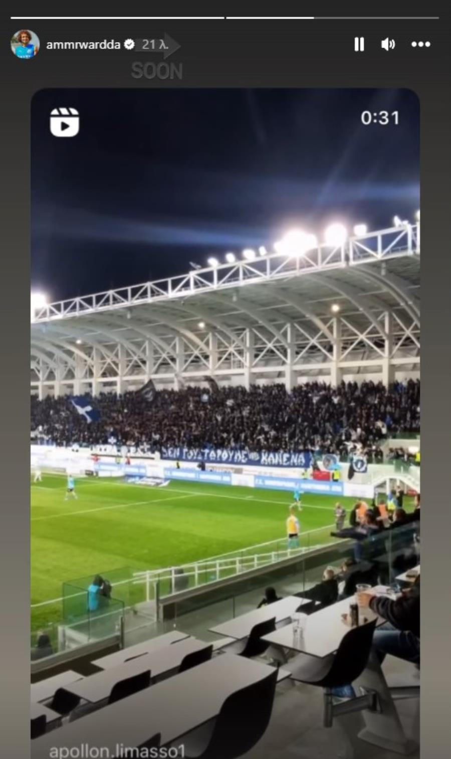 Ο Ουάρντα ανέβασε story με βίντεο από την θύρα 1. Ο Αιγύπτιος ανέβασε το σύνθημα των γαλάζιων, «Τρελαίνομαι».