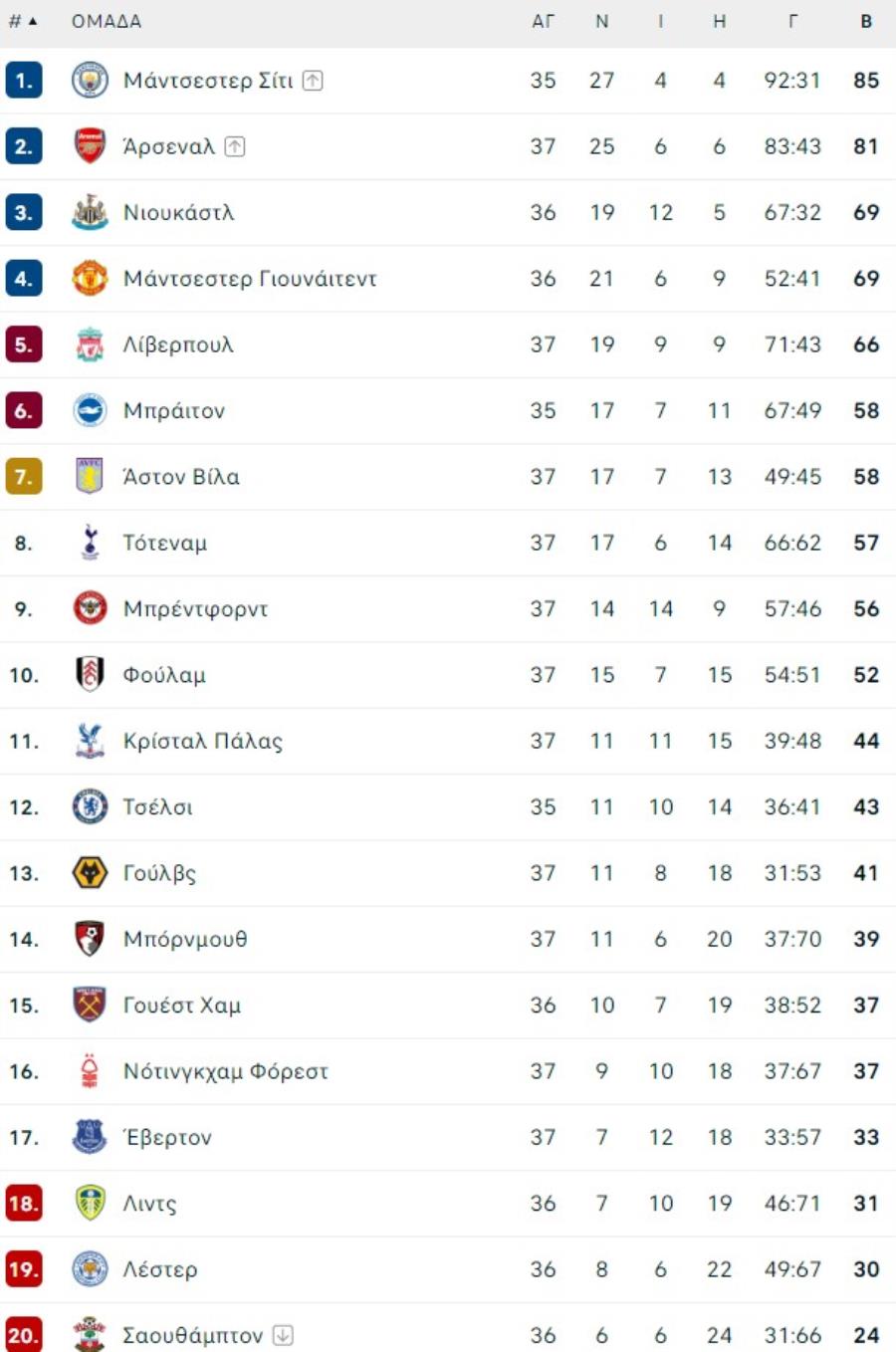 Έτσι, αφενός εξασφάλισε και μαθηματικά την παραμονή του, αφετέρου διατήρησε το +4 ανάμεσα σε «πολίτες» και Λονδρέζους, με τους πρώτους να πανηγυρίζουν από σημέρα το 3ο τους σερί πρωτάθλημα και 9ο συνολικά στην ιστορία τους!