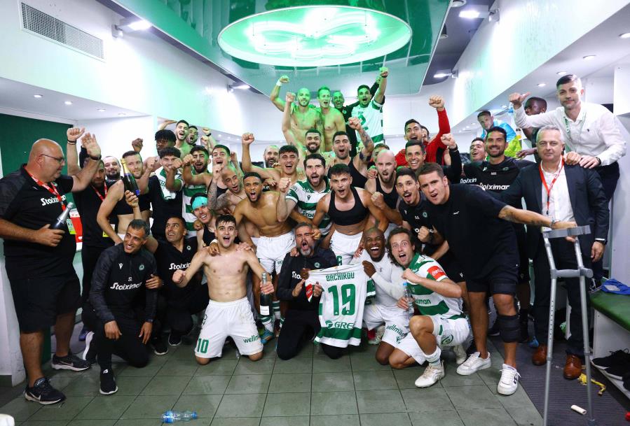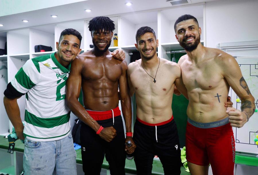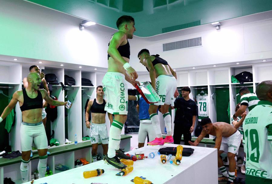 Δείτε φωτογραφίες από τα πανηγύρια των ποδοσφαιριστών στα αποδυτήρια: