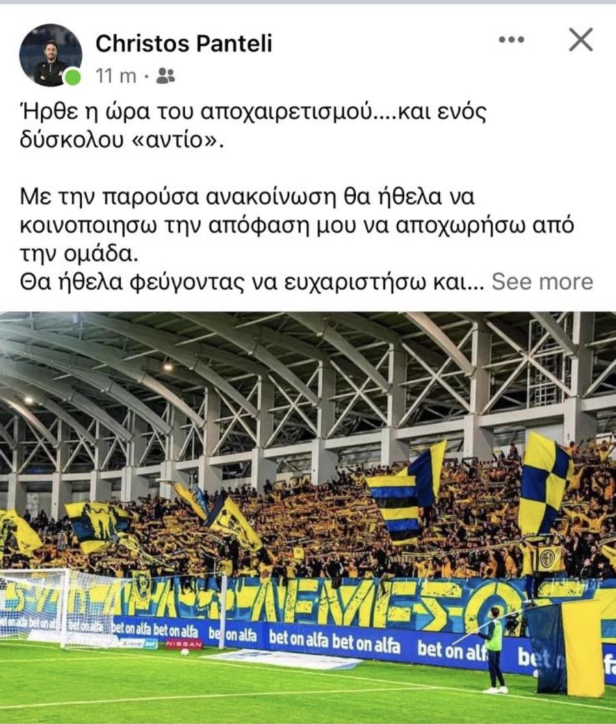 Με την παρούσα ανακοίνωση θα ήθελα να κινητοποιήσω την απόφαση μου να αποχωρήσω από την ομάδα.
