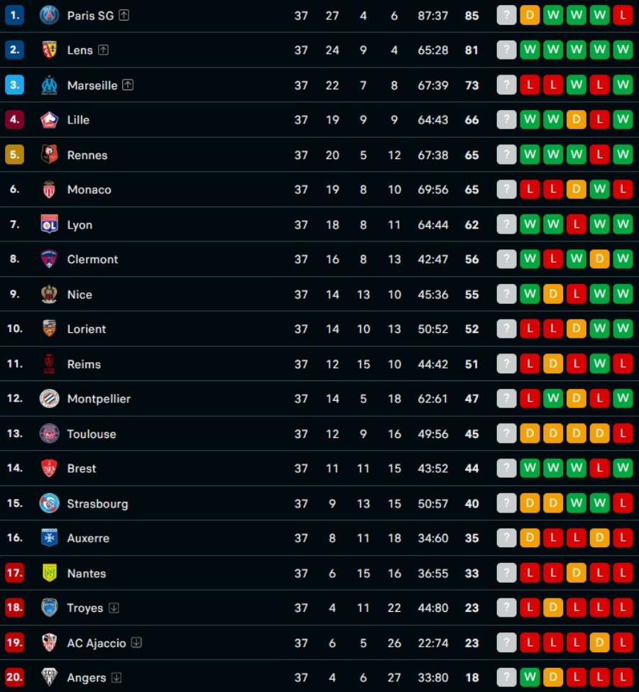 Όσον αφορά τη μάχη του υποβιβασμού, η Ναντ, η οποία συμμετείχε στο φετινό Europa League και έφτασε για δεύτερη σεζόν μέχρι τον τελικό του γαλλικού Κυπέλλου, χρειάζεται μόνο την εντός έδρας νίκη κόντρα στην ήδη υποβιβασμένη Ανζέ, έτσι ώστε να ελπίζει στην παραμονή.