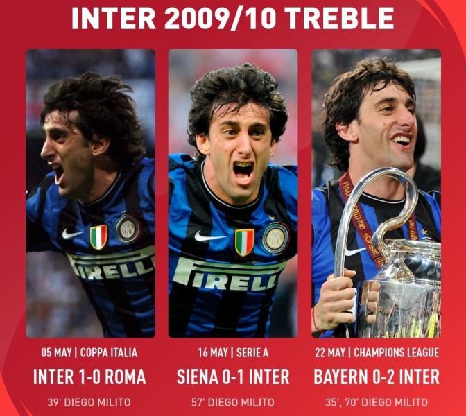Στην Serie A η Ιντερ εκμεταλλεύτηκε όπως όφειλε τα δύσκολα χρόνια των Γιουβέντους και Μίλαν, που δεν είχαν ορθοποδήσει μετά το σκάνδαλο Calciopoli και «χτυπήθηκε» για το πρωτάθλημα με την Ρόμα. Με τον Μιλίτο, μεταγραφή από την Τζένοα, να μην σταματά να σκοράρει, οι Nerazzurri προσπέρασαν στο φινάλε τους Giallorossi για το 2ο σερί Campionato, ενώ με τον Αργεντινό και πάλι, πήραν και το Coppa Italia σε βάρος των Ρωμαίων. Ομως αυτό που γράφει την ιστορία με χρυσά γράμματα είναι το Champions League και σε αυτό ο Μουρίνιο έδωσε ρεσιτάλ.