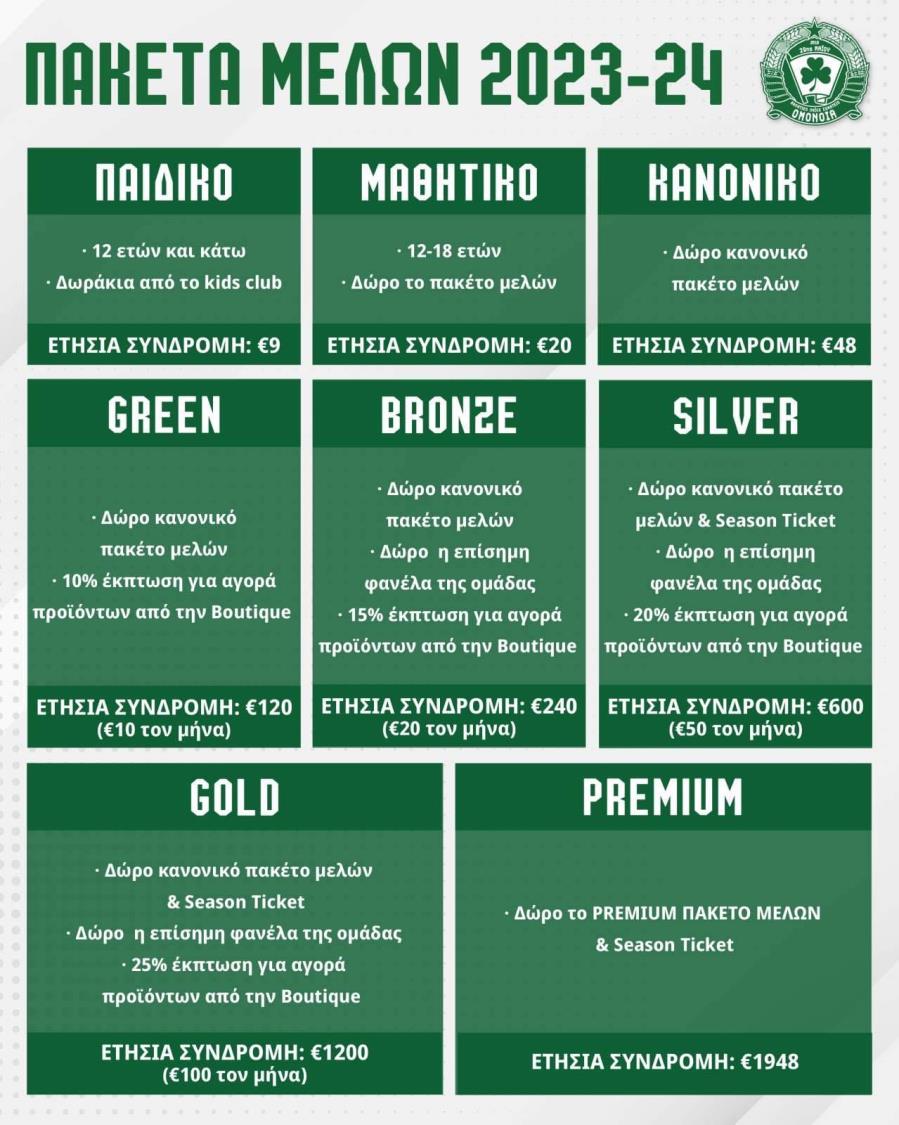 Αγαπητές φίλες και φίλοι του Σωματείου μας, όπως κάθε χρόνο έτσι και φέτος θα έχουμε τα πακέτα μελών για την νέα χρόνια 2023-24 που αφορούν όλους.