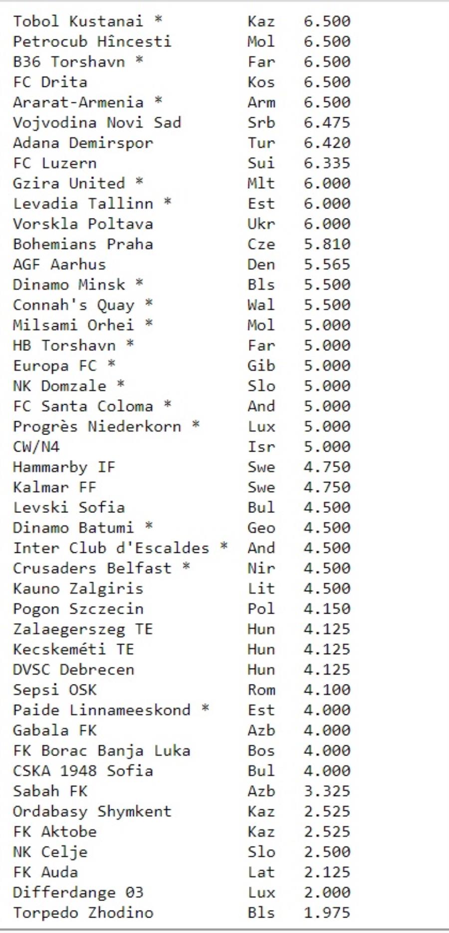ΑΕΚ, ΑΠΟΕΛ, Ομόνοια θα είναι στους δυνατούς για τα ματς της 27ης Ιουλίου και της 3ης Αυγούστου. Στην περίπτωση που εξασφαλίσουν την πρόκριση τότε οι γαλαζοκίτρινοι (14.500 βαθμούς) θα είναι ξανά στους δυνατούς. ΑΕΚ και Ομόνοια με 10.000 βαθμούς αναμένεται ότι θα είναι στους αδύνατους. Η κλήρωση του γ' γύρου θα πραγματοποιηθεί στις 24 Ιουλίου.