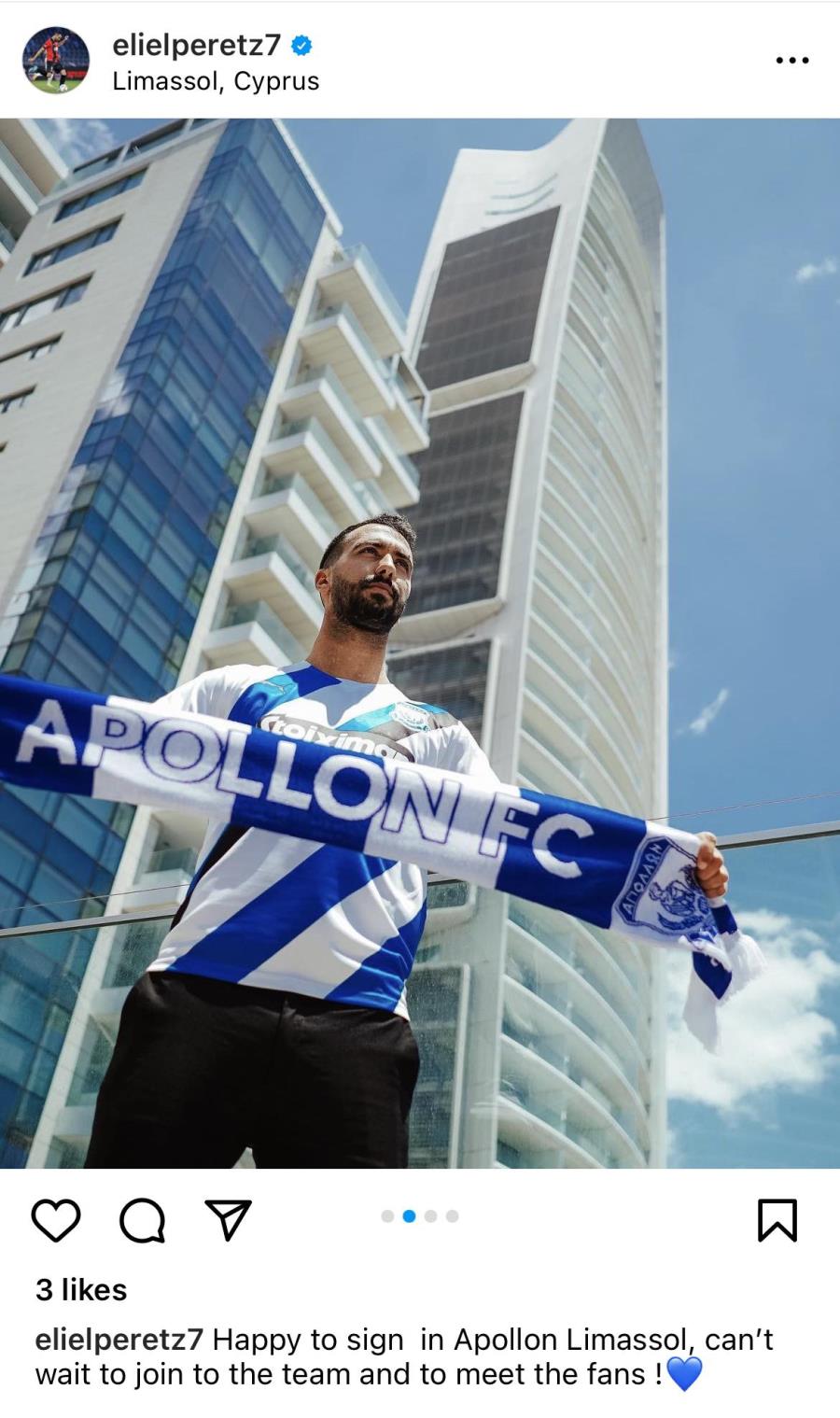 «Είμαι χαρούμενος που υπέγραψα στον Απόλλωνα Λεμεσού, ανυπομονώ να ενταχθώ στην ομάδα και να γνωρίσω τους οπαδούς μας».