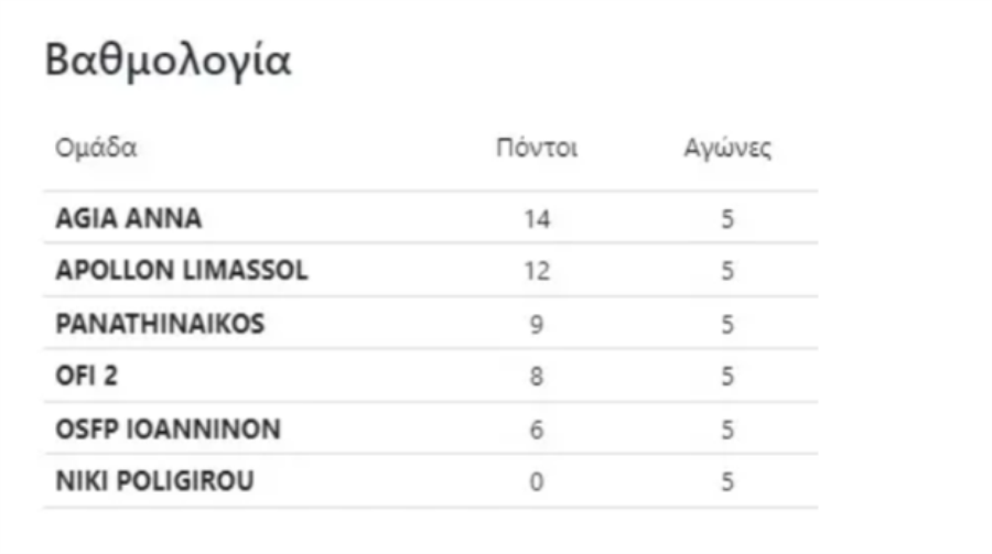Τα αποτελέσματα της ομάδας μας στη πρώτη φάση των ομίλων: