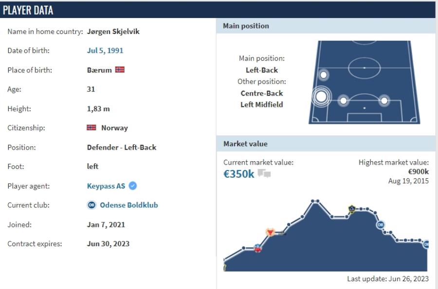 Ουσιαστικά ο Σκιέλβικ έφταιξε το όνομα του την πενταετία 2013-2018 στη Ρόζενμποργκ ενώ την περασμένη σεζόν αγωνίστηκε στην Οντένσε μετρώντας 28 συμμετοχές σε όλες τις διοργανώσεις.