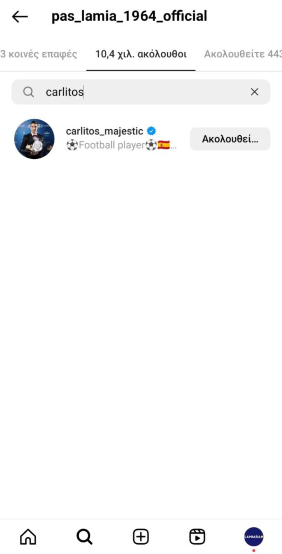 Συγκεκριμένα, ο Καρλίτος έκανε follow στον επίσημο λογαριασμό της Λαμίας στο Instagram και άναψε… φωτιές.