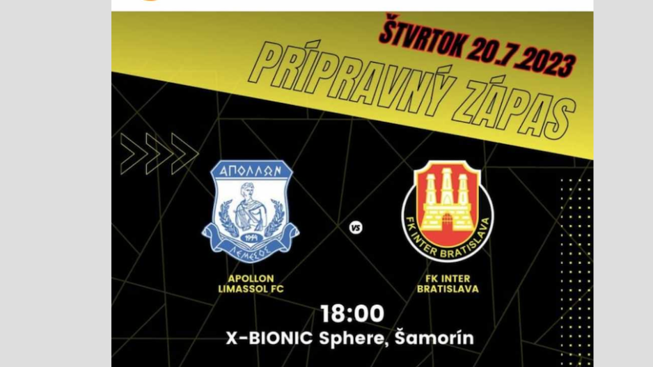 Αντίπαλος η Inter Bratislava στις 19:00 ώρα Κύπρου όπως ανακοινώθηκε από το σύλλογο της Σλοβακίας.