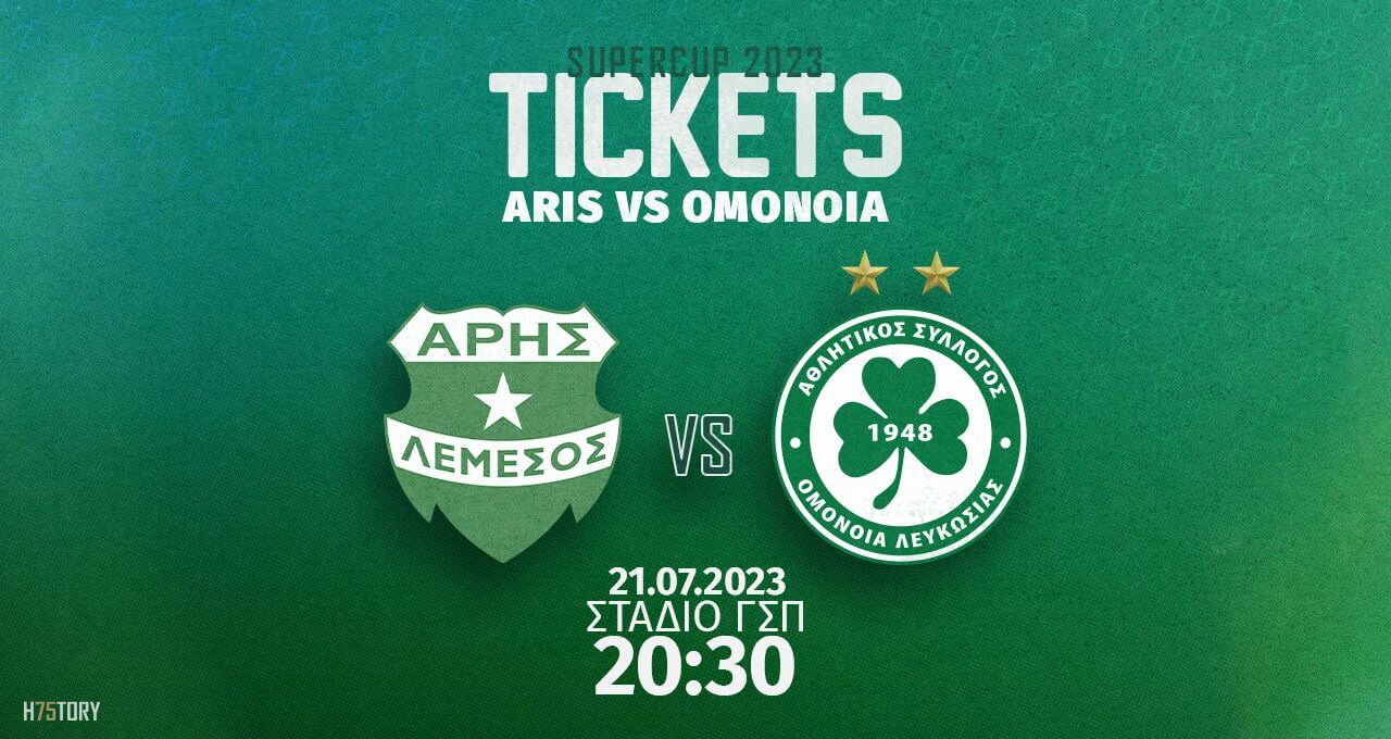 Συνεχίζεται με ελεύθερη προπώληση η διάθεση των εισιτηρίων για τον αγώνα του Super Cup με αντίπαλο τον Άρη, ο οποίος θα διεξαχθεί την Παρασκευή, 21 Ιουλίου, στο στάδιο ΓΣΠ και θα ξεκινήσει στις 20:30.