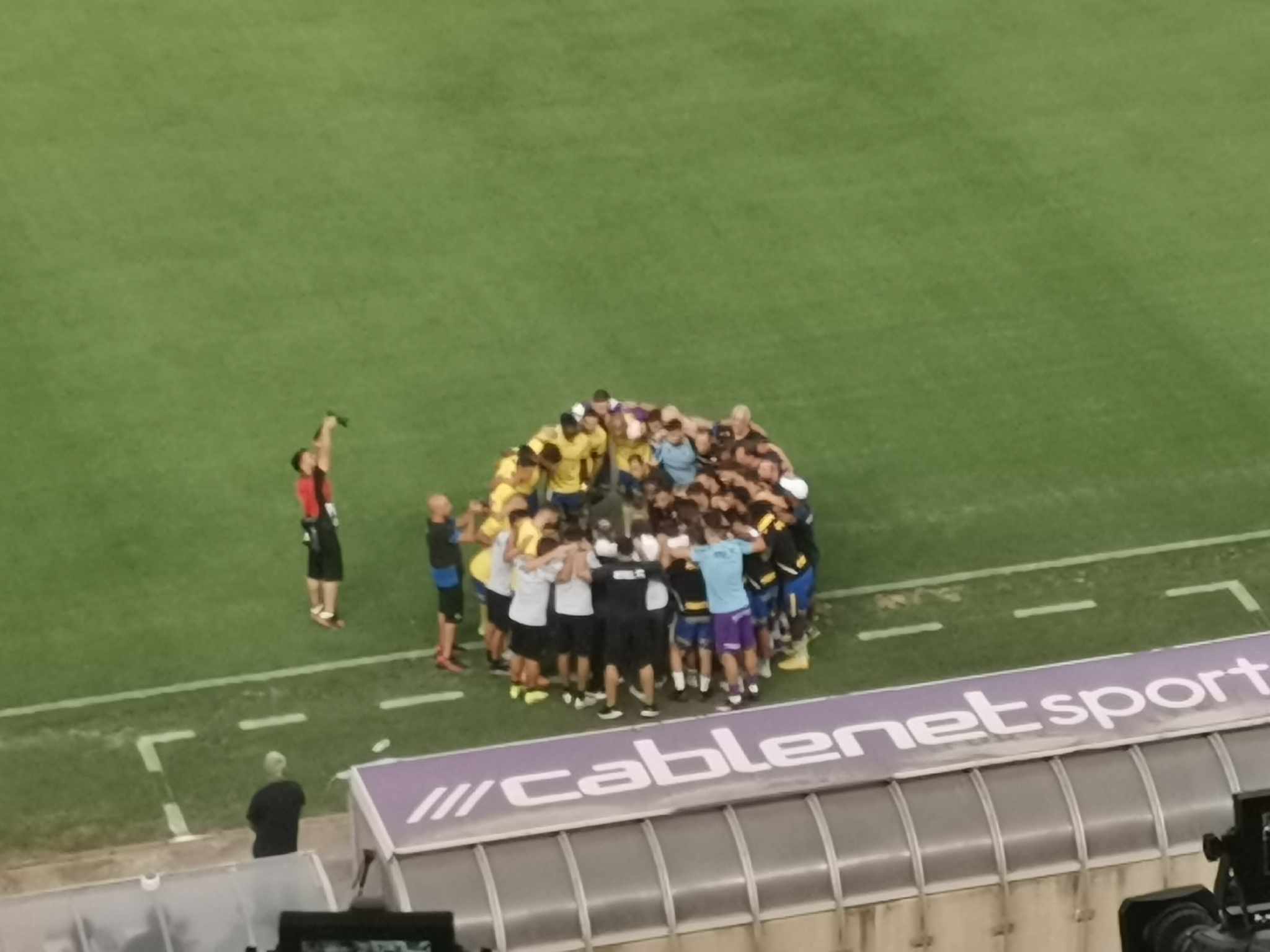 Ο κόουτς των γαλαζοκιτρίνων μίλησε στους ποδοσφαιριστές του και στην συνέχεια φωνάξαν ΑΠΟΕΛ και χειροκροτήθηκαν.