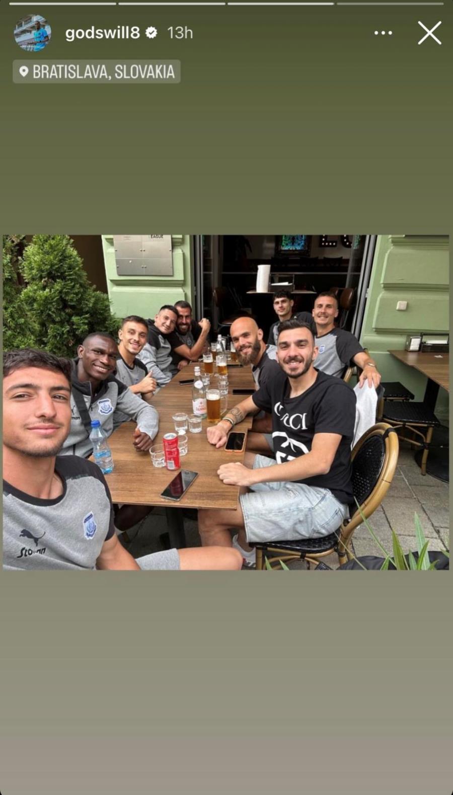 Στόρι με αρκετούς συμπαίκτες του σε ώρα χαλάρωσης στη Σλοβακία, ανέβασε στα μέσα κοινωνικής δικτύωσης, ο ποδοσφαιριστής του Απόλλωνα, Γκοντσγουίλ Εκπολό.