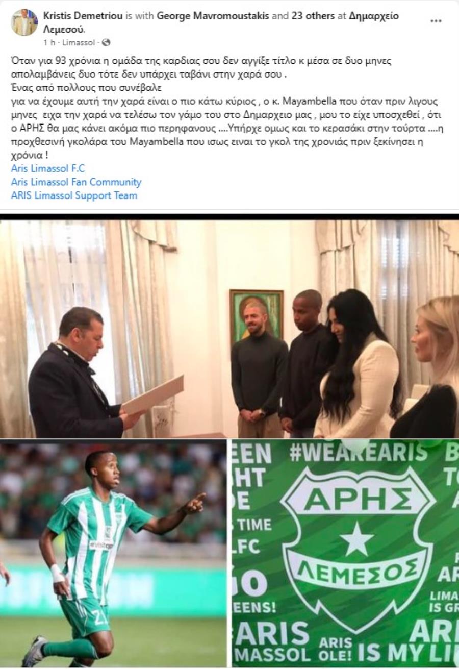 Ο ποδοσφαιριστής του Άρη παντρεύτηκε την αγαπημένη του πριν μερικούς μήνες στην Λεμεσό, πριν την κατάκτηση του πρωταθλήματος από την Λεμεσιανή ομάδα.