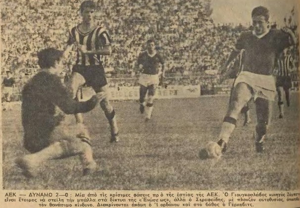Στη Νέα Φιλαδέλφεια η ΑΕΚ των Νεστορίδη-Παπαϊωάννου νικά μπροστά σε 40.000 θεατές με 2-0 την πανίσχυση Ντιναμό που είχε στο ρόστερ της τον Ντράζαν Γέρκοβιτς, ο οποίος στο Παγκόσμιο Κύπελλο της Χιλής (1962) είχε καταλάβει τη πρώτη θέση των σκόρερ (μαζί με άλλους πέντε) χάρη στα τέσσερα γκολ που σημείωσε.