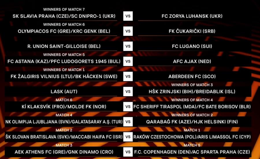 Αν αποκλειστεί από την Ρακόφ, στα πλέι-οφ του Γιουρόπα Λιγκ θα αντιμετωπίσει των ηττημένων από τα πιο κάτω ζευγάρια: