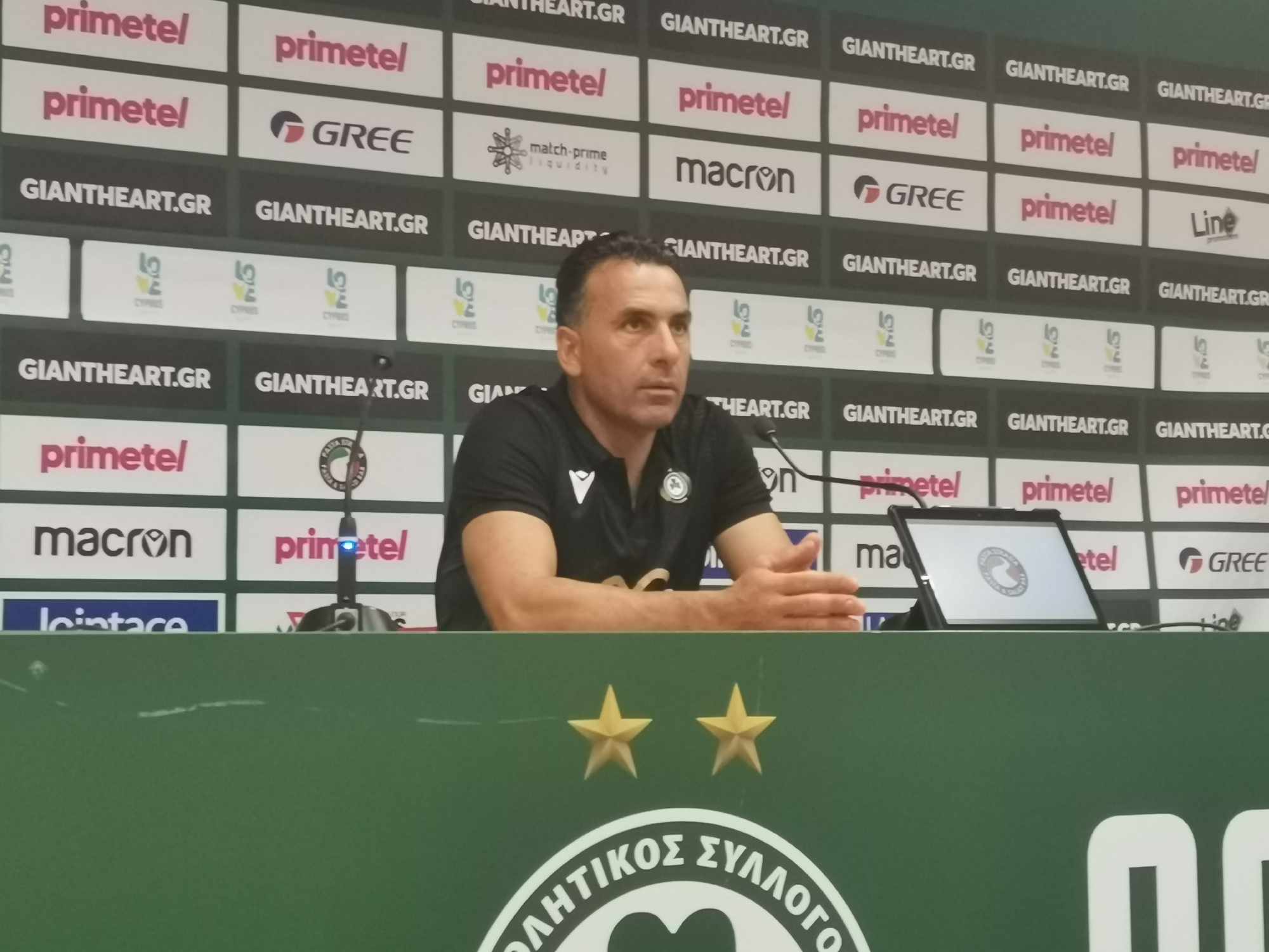 «Τελείωσε το πρώτο ημίχρονο. Συγχαρητήρια στους ποδοσφαιριστές. Μας περιμένει μια δύσκολη αποστολή αλλά θα πάμε για να πάρουμε την πρόκριση. Δεν ήμασταν καλοί στο α’ μέρος, είχαμε κάποια προβλήματα, αλλά στο δεύτερο ημίχρονο τα διορθώσαμε και κάναμε καλό παιχνίδι. Κάποιες φορές στην αντεπίθεση πρέπει να είμαστε πιο αποτελεσματικοί. Θα το αναλύσουμε το ματς και θα δούμε και τα καλά και τα κακά. Η Μίνζτιλαντ έκανε τη μοναδική μεγάλη της ευκαιρία μετά από ένα πέναλτι που είχαμε. Ένα μεγάλο ευχαριστώ στον κόσμο γιατί μας βοήθησαν να βρούμε τα πόδια μας όταν είχαμε δύσκολες στιγμές. Ξέρουμε τι μας περιμένει, αλλά πάμε στη Δανία με μοναδικό στόχο την πρόκριση».
