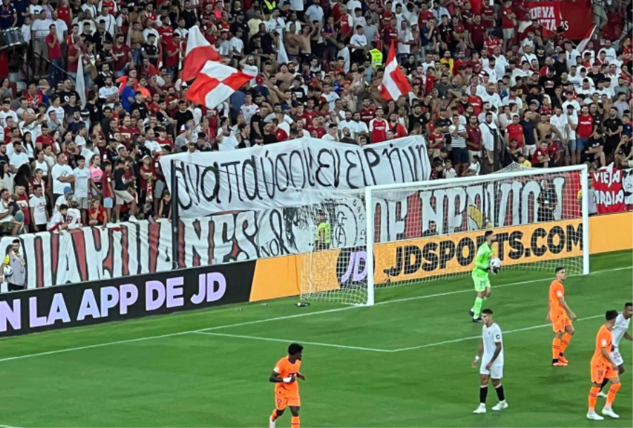 «Αναπαύσου εν ειρήνη», ανέφερε το πανό που ανάρτησαν οι οπαδοί της Σεβίλλης, στην αναμέτρηση της ομάδας τους με την Βαλένθια, για την πρεμιέρα του ισπανικού πρωταθλήματος.