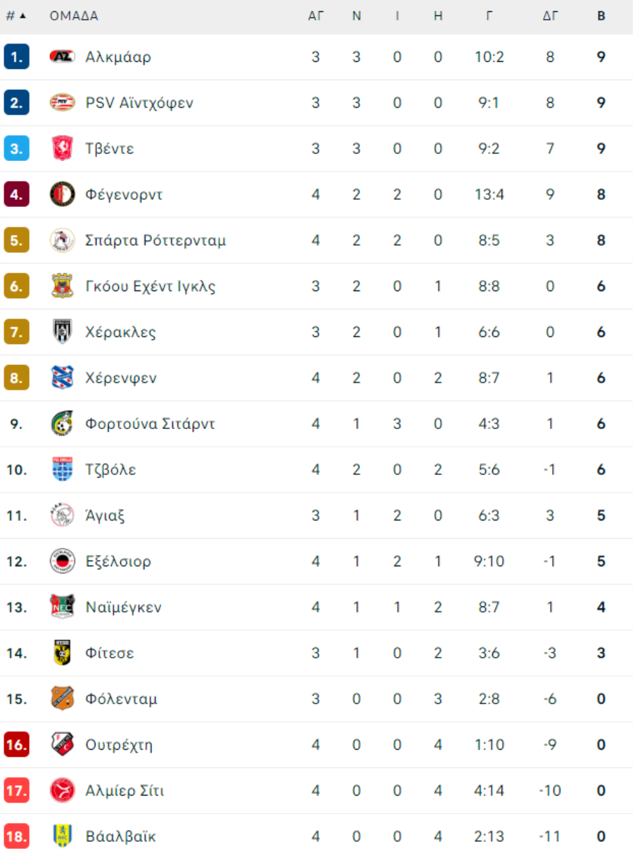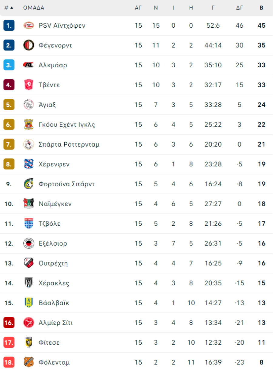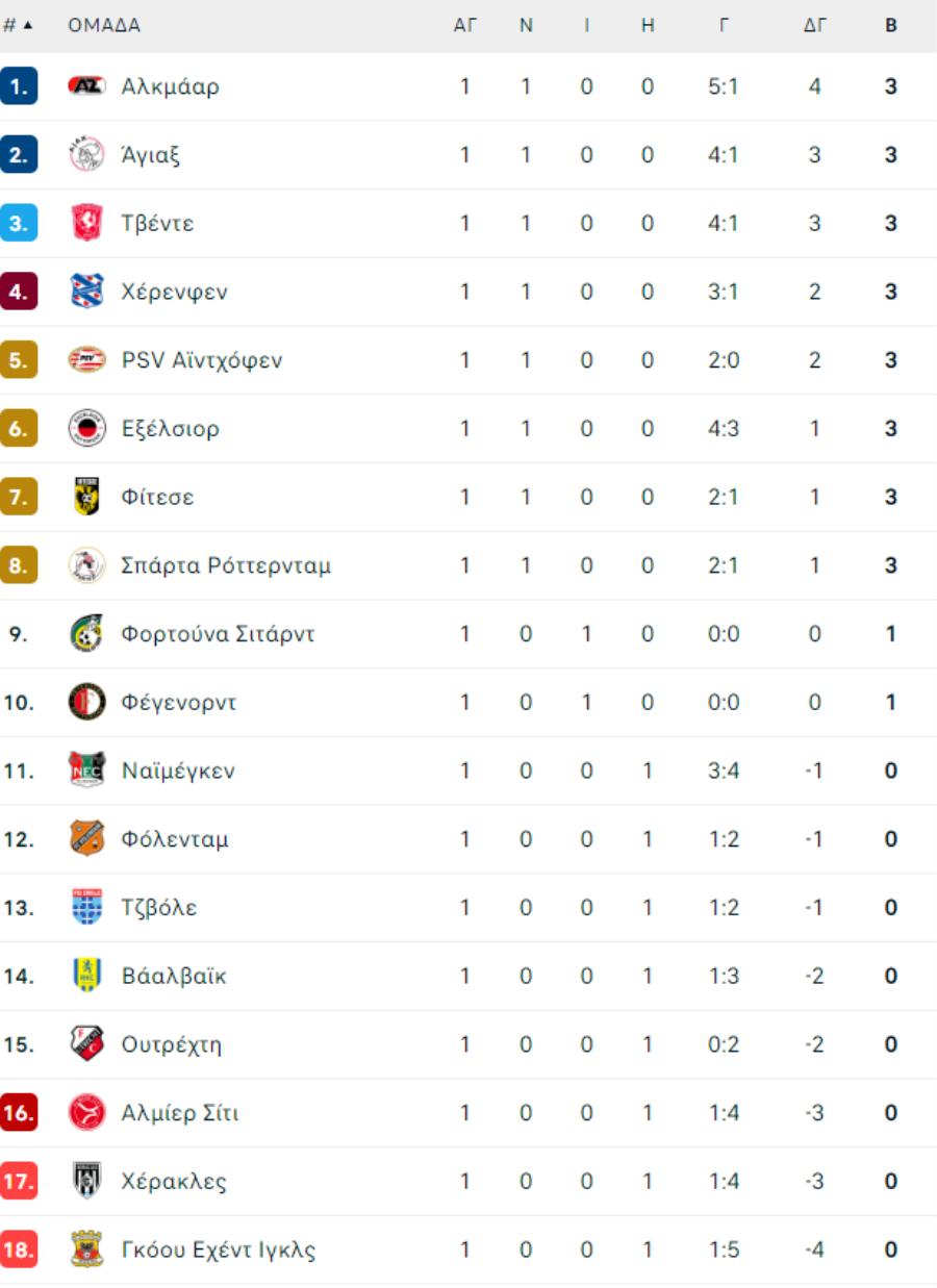 ΟΛΛΑΝΔΙΑ: Το πρόγραμμα της EREDIVISIE