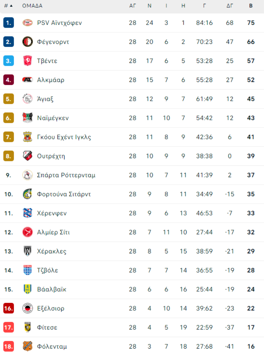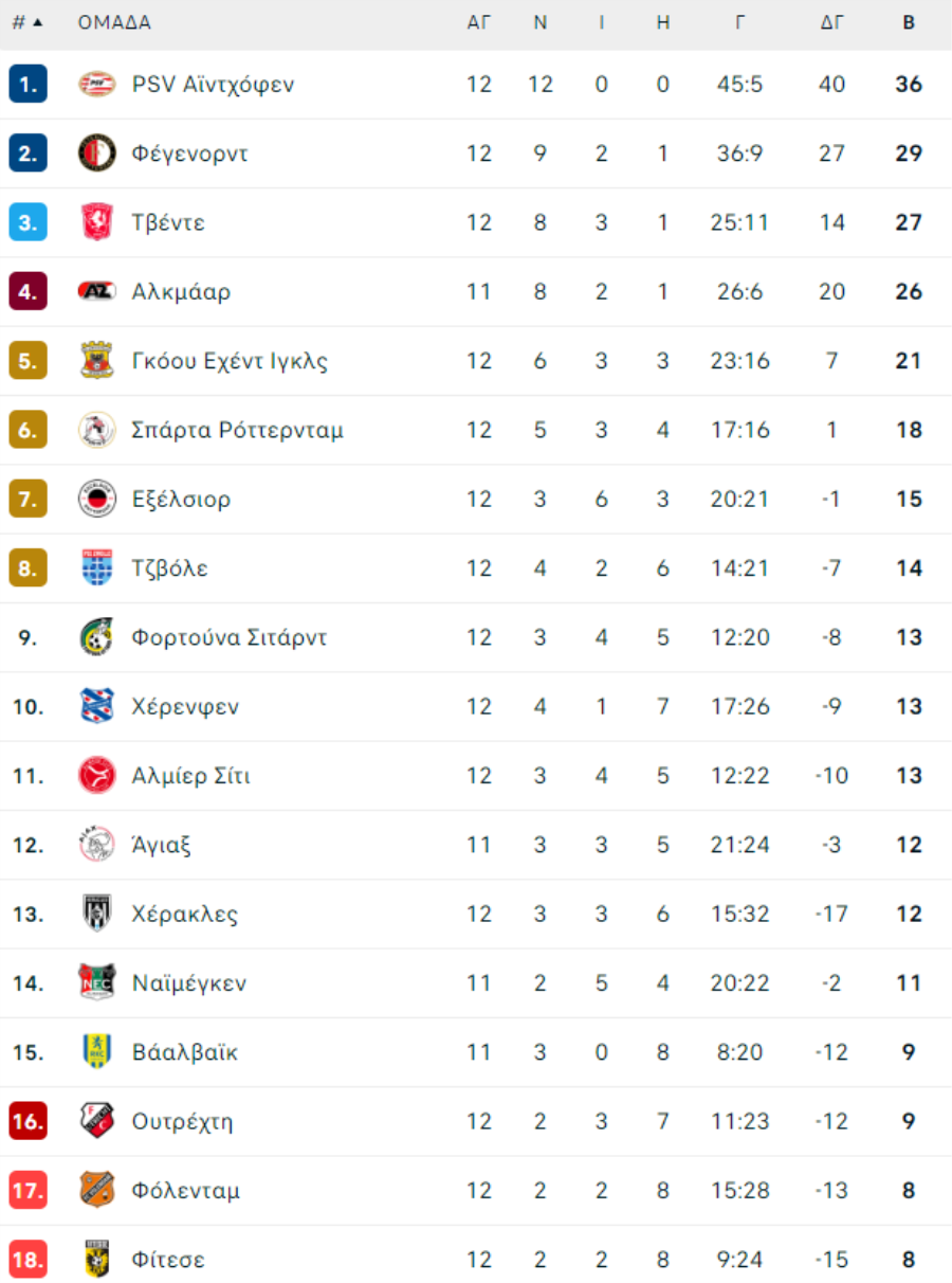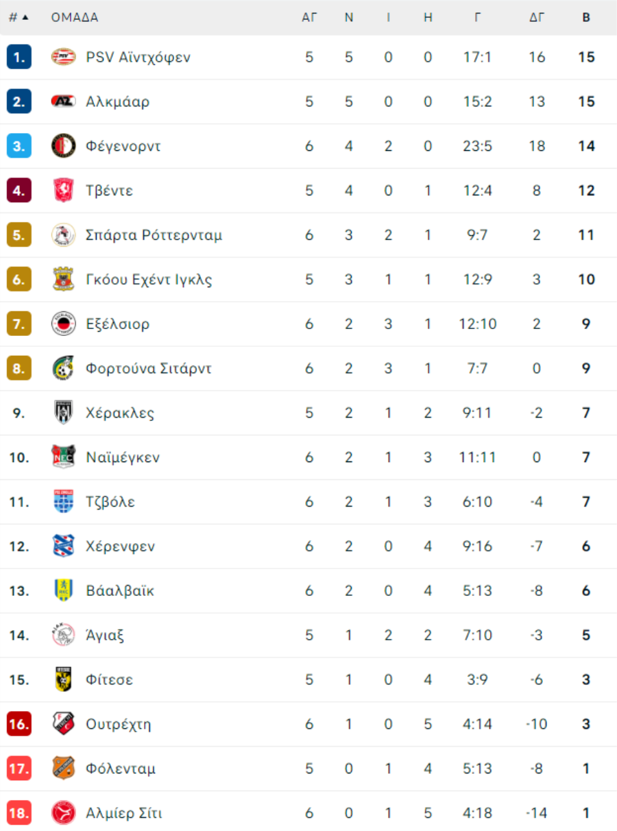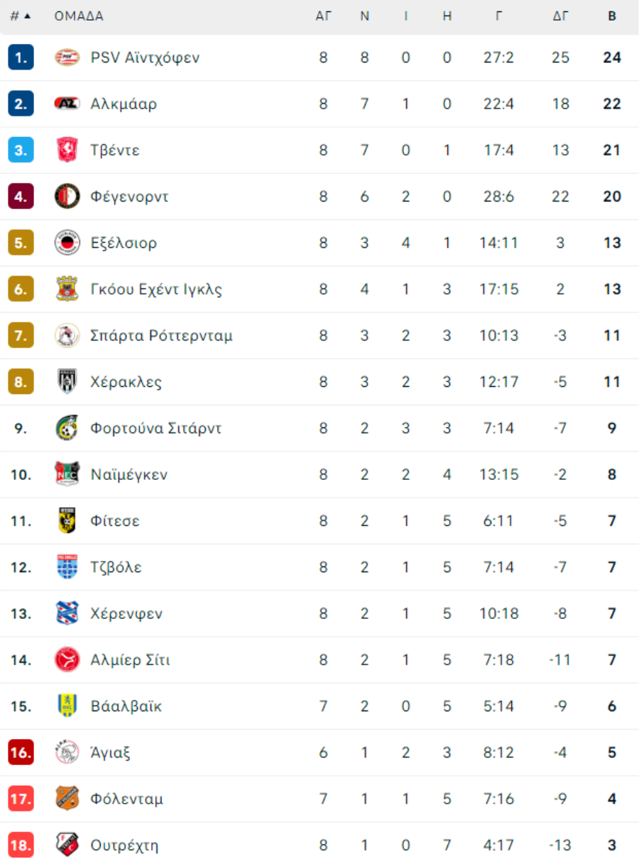 ΟΛΛΑΝΔΙΑ: Το πρόγραμμα της EREDIVISIE