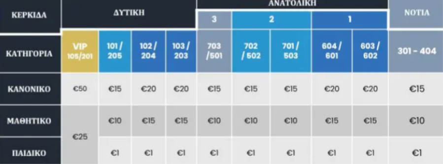 ΠΙΝΑΚΑΣ ΤΙΜΩΝ ΕΙΣΙΤΗΡΙΩΝ