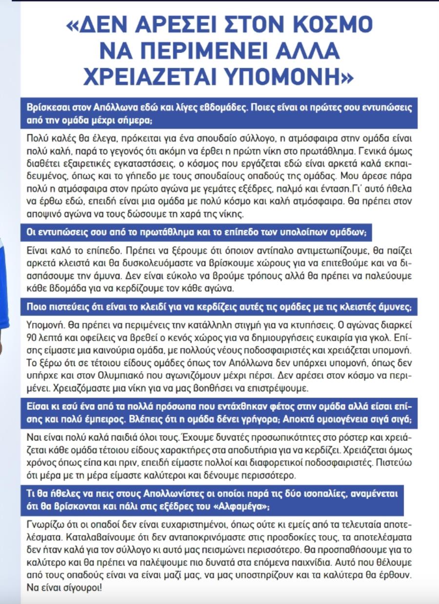 Πατήστε ΕΔΩ για να δείτε ολόκληρο το match program του Απόλλωνα