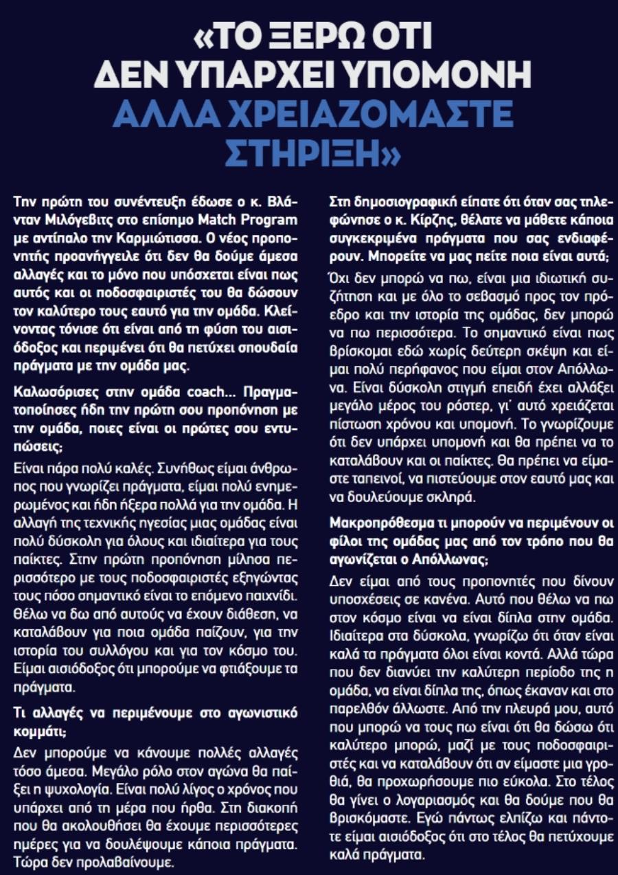 Πατήστε ΕΔΩ για να δείτε ολόκληρο το match program του Απόλλωνα