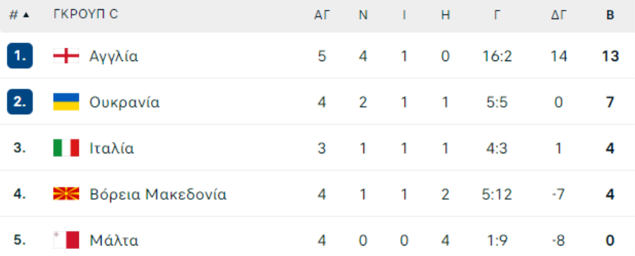 Αγγλία-Βόρεια Μακεδονία 7-0
