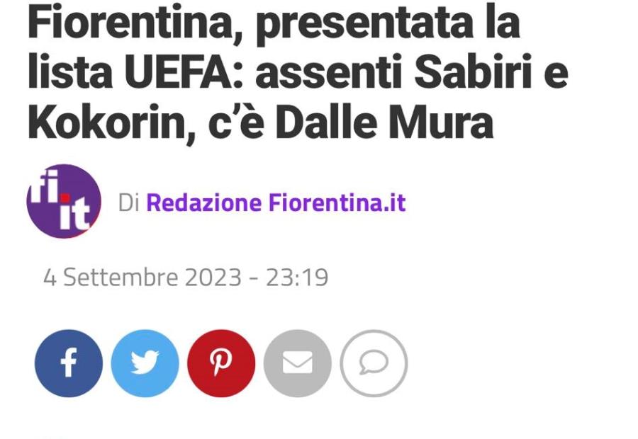 Η ιστοσελίδα fiorentina.it παρουσίασε τη λίστα της Φιορεντίνα για τους ομίλους του Κόνφερενς Λιγκ με τον Κακόριν να απουσιάζει (φυσιολογικά) και να γίνεται θέμα. «Η Φιορεντίνα έδωσε τη λίστα της UEFA: Απουσιάζουν Σαμπίρι και Κακόριν, μέσα ο Μούρα», είναι ο τίτλος στο ρεπορτάζ.