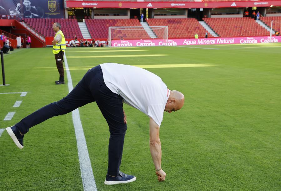 Με την είσοδο του στον αγωνιστικό χώρο του «Λος Καρμένες» για την προθέρμανση της Εθνικής Κύπρου ενόψει του αγώνα με την Ισπανία ο Κετσπάγια έκανε την... καθιερωμένη του κίνηση.